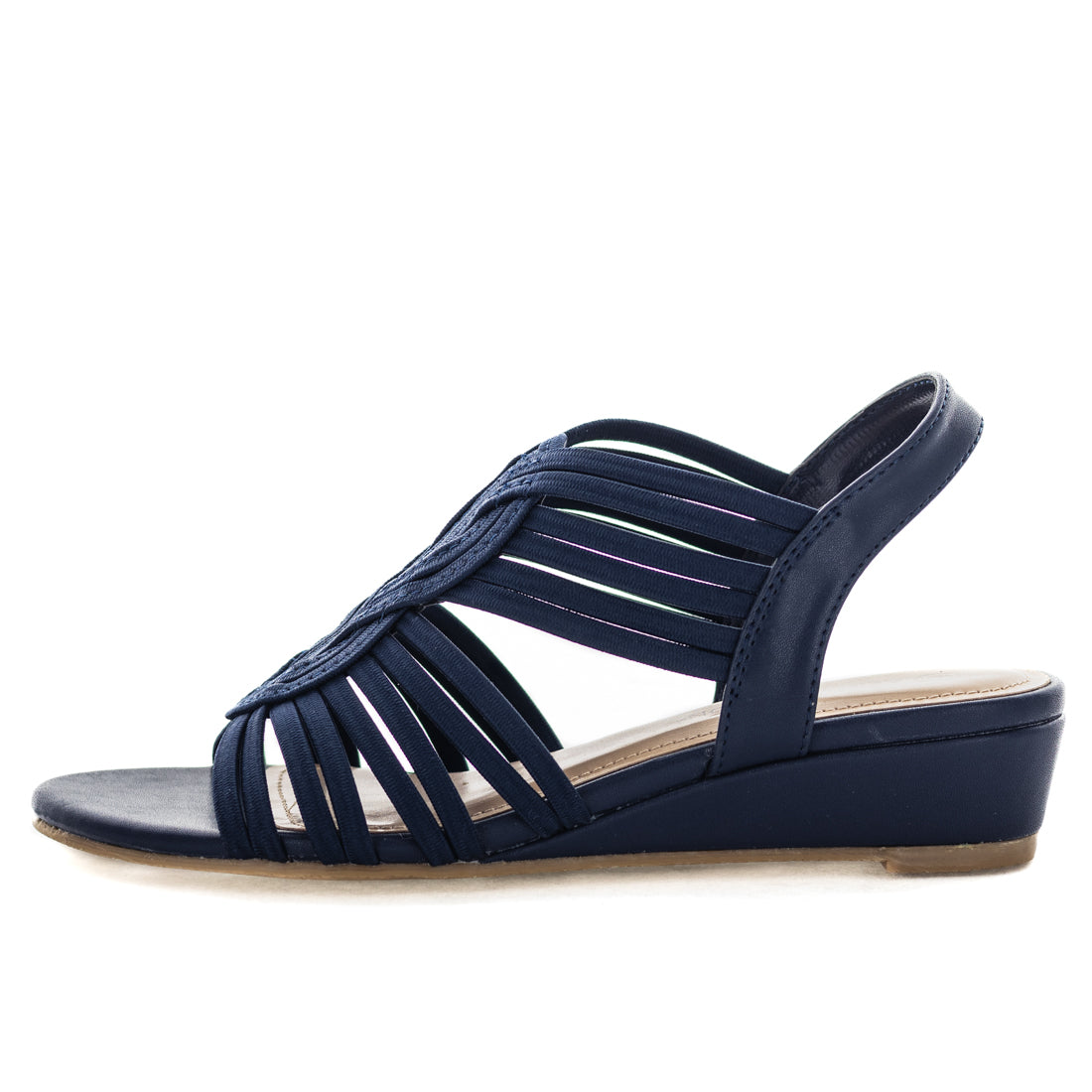 Experience all-day comfort with the Aerocushion Mora Womens Sandals in Navy. Featuring an elastic interlaced strappy design for a secure fit, these sandals include a padded insole to cushion each step. The 40mm wedge heel offers a subtle lift while maintaining stability, making them ideal for both casual and dressy occasions.