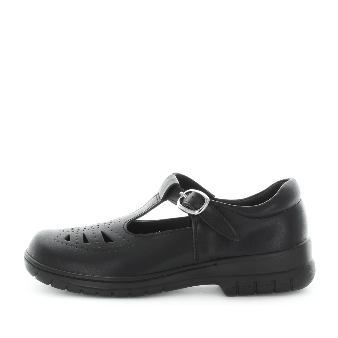 Love the classic traditional leather T-bar junior school shoes Jarrell by Wilde features feminine laser-cut upper, plus it has a leather lining and sock for breathability and keeping feet fresh during the busy school day.