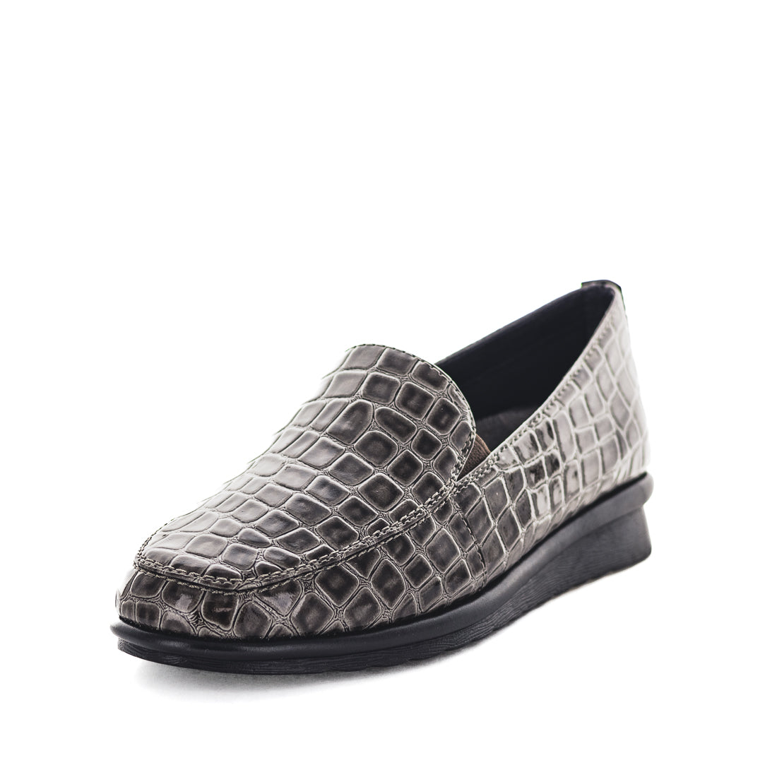 Enhance your comfort and style with MAISY slip-ons. The double sided elastic feature provides a snug fit while the Croc PU upper adds a touch of elegance. Enjoy the removable moulded foam padded sock for extra cushioning, and the lightweight and flexible outsole for all-day wear. The 25mm wedge offers a subtle height boost.