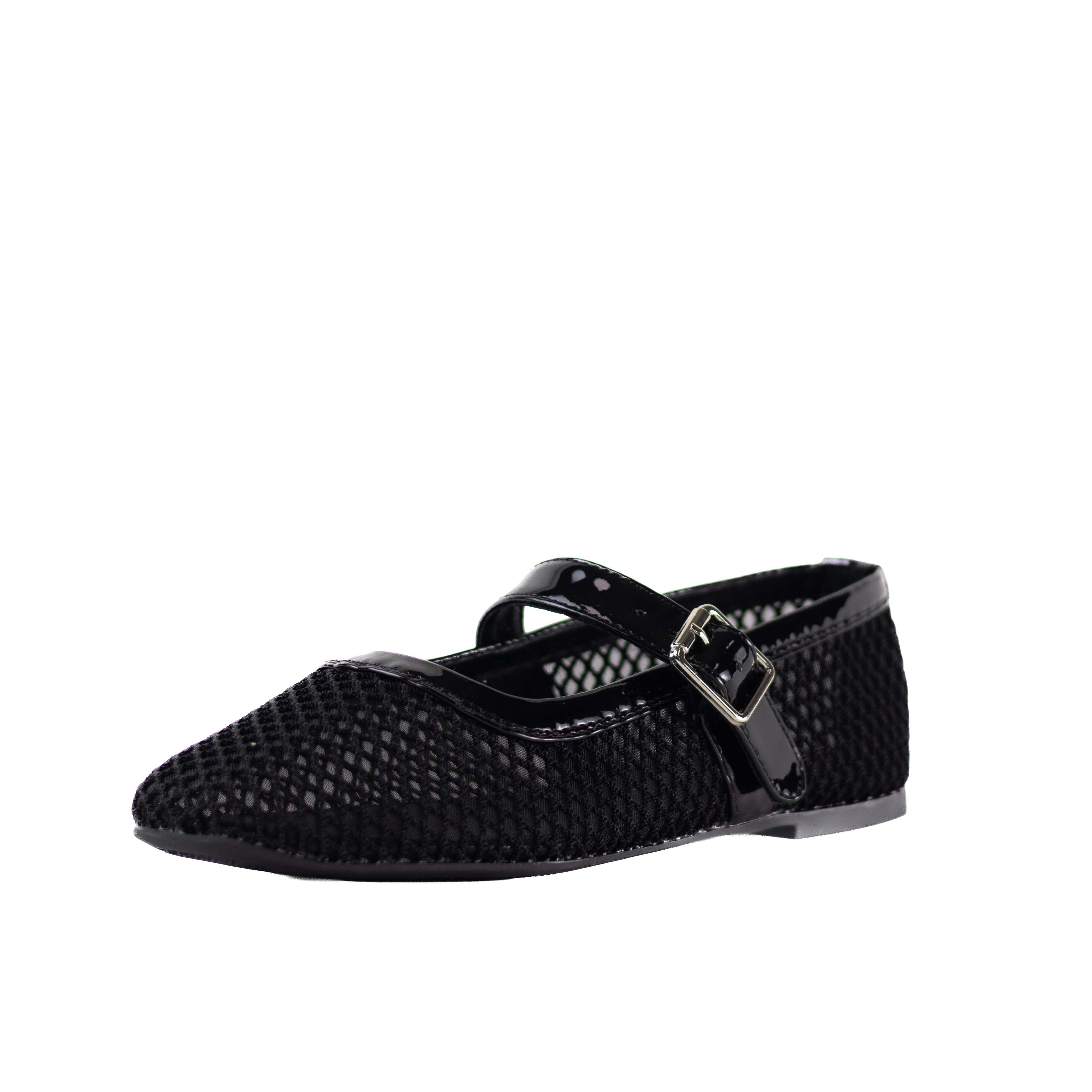 • Combination mesh/lace Mary-Jane flat