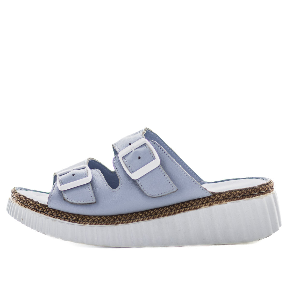 Halo Sandals combine contemporary style with practical comfort. Crafted from soft leather with a matching leather lining and padded sock, these slip-ons deliver cushioned support throughout the day. Dual adjustable buckle straps ensure a personalised, secure fit, while the distinctive rope-look midsole adds visual interest. Built on a 40mm platform wedge, they offer elevated comfort with a modern silhouette. The flexible, durable construction makes them an ideal choice for both casual outings and everyday wear.